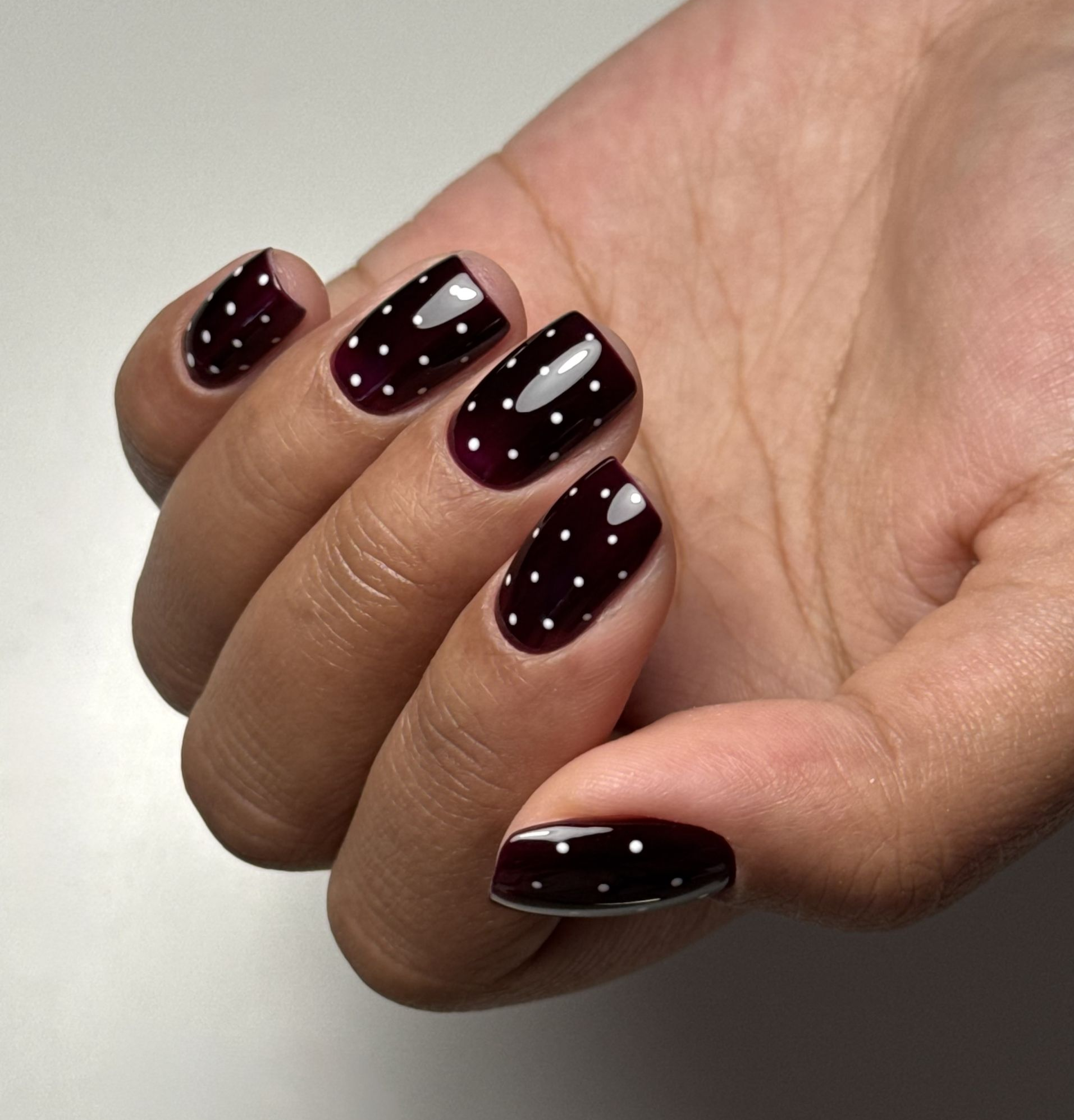 Vous pouvez superposer vos points sur le BIAB™ ou essayer une française avec des détails à pois pour quelque chose d'un peu différent.